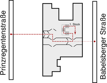 Die Einfahrt über die Prinzregentenstraße 60 ist nicht möglich. Bitte benutzen Sie ausschließlich den Eingang über die Babelsberger Str. 24.